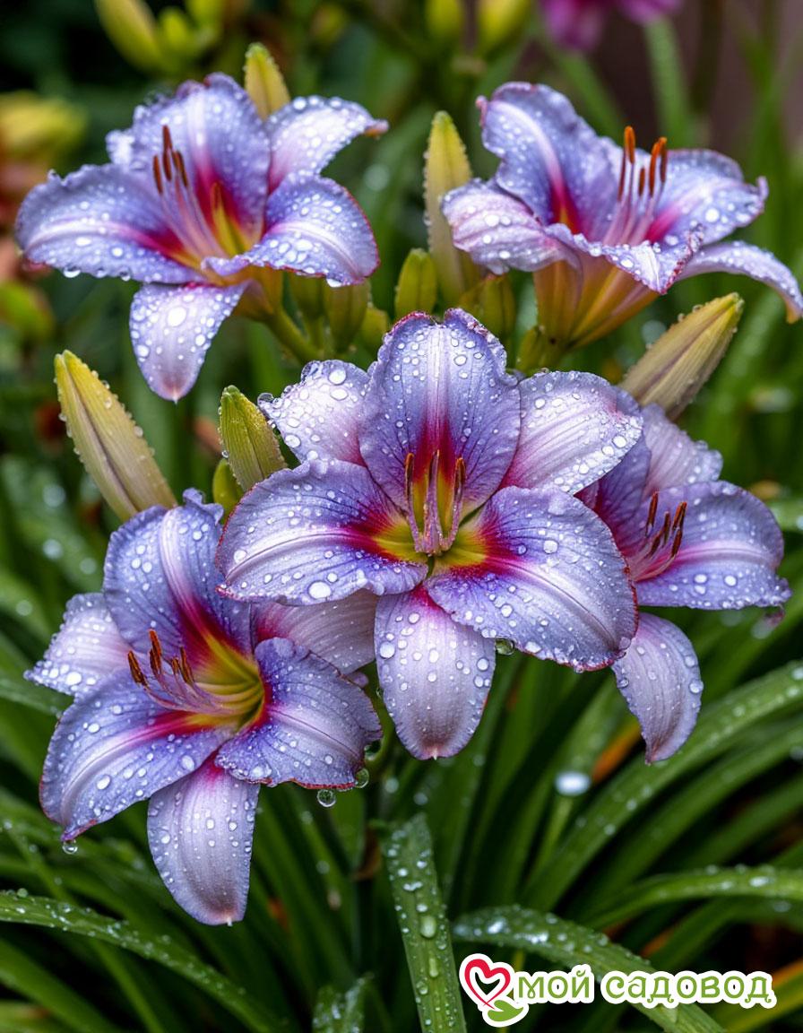 Защита от вредителей и болезней: Лилейники относительно устойчивы к вредителям и болезням, но иногда могут поражаться слизнями, тлей или ржавчиной. При необходимости применяют соответствующие меры защиты.